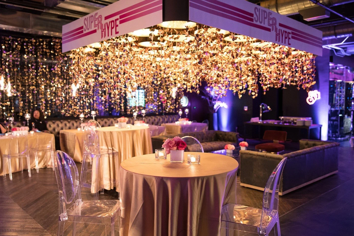 Featuring a chic bar, plush lounge seating, a high-quality projector for entertainment, and a playful limo photo booth, this stylish venue offers a one-of-a-kind setting for any event.